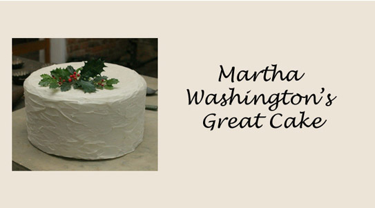 Mrs. Washington's original Great Cake recipe called for 40 eggs, 4 pounds of butter and 4 pounds of sugar.